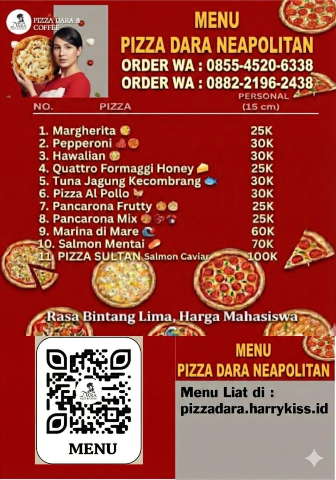 Pizza Neapolitan adalah pizza otentik dari Napoli, Italia, terkenal dengan adonan lembut, tipis di tengah, dan pinggiran mengembang tinggi (berongga) yang krenyes krenyes bila di makan, ada bunyi kres nya, dibuat dengan bahan berkualitas seperti tomat San Marzano dan keju mozzarella, dipanggang cepat di oven bersuhu sangat tinggi (sekitar 425°C sampai 500°C) hanya 60-90 detik, menghasilkan tekstur lembut, juicy, sedikit gosong (charred), dan beraroma khas.